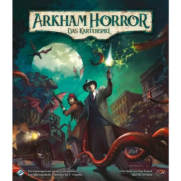 Arkham Horror: Das Kartenspiel ist ein kooperatives Living Card Game (LCG), in dem ein bis vier Ermittler zusammenarbeiten, um arkane Geheimnisse und Verschwörungen aufzudecken. Währenddessen müssen sie sich gleichzeitig persönlichen Dämonen aus ihrer Vergangenheit stellen. Jeder Spieler übernimmt die Rolle eines Ermittlers und erstellt passend zu den Fähigkeiten dieses Ermittlers ein Deck. Eine Reihe miteinander verbundener Szenarien verwebt sich zu einer erzählenden Kampagne, in der ein größeres Geheimnis enthüllt werden soll. In jedem dieser Szenarien erkunden die Ermittler verschiedene bedrohliche Orte, suchen nach Hinweisen, mit denen sie die Geschichte voranbringen können, und versuchen, den hinterhältigen Mächten des Mythos zu entkommen oder sie zu besiegen. Während sie in der Kampagne vorankommen, erhalten die Ermittler Erfahrung und neue Erkenntnisse, die es den Charakteren ermöglichen, sich in eine Vielzahl verschiedener Richtungen weiterzuentwickeln, indem sie mächtige und neue höherstufige Karten zu ihrem Deck hinzufügen. Doch Vorsicht: Je mehr ihr mit der arkanen Welt in Kontakt kommt, umso größer ist auch das Risiko, wahnsinnig zu werden. Die Ermittler müssen sich selbst vor dem Griff des Wahnsinns schützen, während sie gleichzeitig versuchen, zu überleben und das Geheimnis zu lüften. Arkham Horror: Das Kartenspiel wird über mehrere Runden gespielt. Jede Runde besteht aus den vier Phasen Mythosphase, Ermittlungsphase, Gegnerphase und Unterhaltsphase. In der Mythosphase versuchen die arkanen Kräfte, denen sich die Ermittler stellen, ihre bösartigen Pläne voranzutreiben. In der Ermittlungsphase hat jeder Ermittler drei Aktionen, die er u. a. zum Bewegen, Kämpfen, Ermitteln oder Karte ziehen einsetzen kann. In der Gegnerphase bewegen sich die Gegner und greifen die die Ermittler an. In der Unterhaltsphase beziehen Helden und Schurken Stellung und bereiten sich auf die nächste Runde vor. Das Szenario ist beendet, sobald die Spieler eine Auflösung des Szenarios erreicht haben. Der Clou an Living Card Games (LCG) ist, dass ihr das Spiel durch regelmäßig erscheinende Erweiterungen anpassen und noch spannender machen könnt. Die Erweiterungen führen neue Ermittler, zusätzliche Szenarien oder Kampagnen und neue Spielerkarten ein, welche die Ermittlerdecks bereichern und mit zusätzlicher Tiefe versehen. Obwohl das Spielerlebnis am größten ist, wenn man eine komplette Kampagne durchspielt, könnt ihr jedes Szenario einer Kampagne auch einzeln spielen. Anders als bei Sammel-Kartenspielen enthalten alle LCG-Erweiterungen dasselbe Spielmaterial. Sie bestehen nicht aus zufälligen Karten. Diese überarbeitete Neuauflage von Arkham Horror: Das Kartenspiel ist vollständig kompatibel mit allen bisher erschienenen Erweiterungen. Die neue Box enthält genug Spielmaterial, um direkt mit bis zu vier Ermittlern ins Abenteuer zu starten. Außerdem sind einige Karten aus früheren Erweiterungen enthalten, um neuen Ermittlern mehr Optionen bei der Charakterentwicklung zu geben. Einige Karten haben ein neues Artwork bekommen, an den Spielmechaniken und den Werten der Karten hat sich aber nichts geändert. Überarbeitet wurde auch die Sortierung der Karten, um den Einstieg zu erleichtern. Beispielsweise sind Ermittler nun bei den für sie gedachten Karten zu finden. Ihr könnt mit der Neuauflage einfach das Deck durchmischen und losspielen. Verschiedene kleine Verbesserungen, die den Spielkomfort erhöhen, sind überarbeitete und jetzt mit Nummern versehene Ressourcenmarker oder ein Marker für den leitenden Ermittler.Art.-Nr.: 1806652