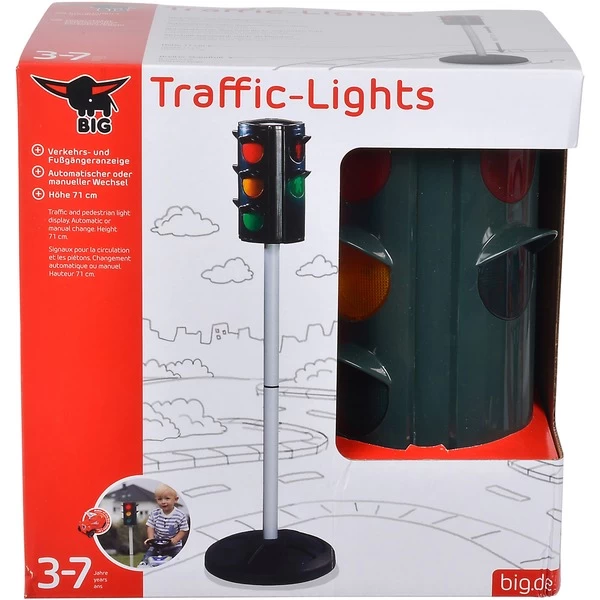 Sicher durch den Straßenverkehr – mit BIG lernen schon die Kleinsten die Ampelregelung spielend leicht. Denn die Kinderampel BIG-Traffic-Lights zeigt den begeisterten BIG-Bobby-Car-Fahrern und Fahrerinnen, wann sie Vorfahrt haben und wann sie halten müssen. Automatisch wechselt die stabile Verkehrsampel ihr Licht im 30 Sekundentakt von Rot auf Grün. Die Ampel ist im Handumdrehen montiert. Der Betrieb erfolgt über drei handelsübliche Mignon-Batterien. Und wenn die Verkehrsteilnehmer einmal vergessen sollten, die Ampel abzuschalten, wird energiesparend nach einer Stunde die Stromzufuhr automatisch unterbrochen.Art.-Nr.: 1195267