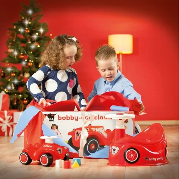 Jetzt ist das Trockenwerden kinderleicht. Denn mit dem lustigen Lerntöpchen im BIG-Bobby-Car-Design macht das Sauberwerden riesigen Spaß. Das knallrote Töpfchen mit drehbarem Lenkrad zieht Kleinkinder magisch an und selbst lange Trainingseinheiten sind durch den bequemen Sitz mit hoher Rückenlehne kein Problem. Ist das Ziel erreicht, lassen sich Mama oder Papa schnell mit der Hupe im Lenkrad herbeirufen. Und auch für die Eltern ist das Töpfchen ideal, denn der Spritzschutz verhindert, dass etwas daneben geht und durch den separaten Einsatz lässt es sich einfach reinigen. Das Lenkrad kann leicht entnommen und die Schale mit dem Griff hinter der Rückenlehne mühelos herausgenommen werden. Höchste Qualität und modernste Fertigungstechniken „Made in Germany“ sichern eine lange Haltbarkeit des BIG-Baby-Potty. Der hochwertige Kunststoff lässt sich sehr gut reinigen. Einsetzbar ist der BIG-Baby-Potty ab einem Alter von 18 Monaten.Art.-Nr.: 1393634