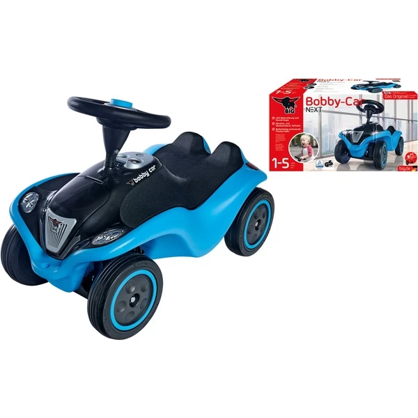 Das Bobby-Car NEXT ist ein hochwertiges Luxus-Rutschfahrzeug für Kinder ab 12 Monaten. Seine LED-Frontscheinwerfer können durch einen Berührungssensor in der Tachoanzeige ganz leicht ein- und ausgeschaltet werden. Für hohen Sitzkomfort ist durch den abnehm- und abwischbaren Softsitz gesorgt. Mit dabei sind auch die breiten Flüsterräder sowie eine zu öffnende Motorhaube. Durch die Direktlenkung der Achse besitzt das Bobby-Car Next einen besonders kleinen Wendekreis. Wie alle Bobby-Cars ist das Next mit jeweils einer Anhängerkupplung vorne und hinten ausgestattet. Ein hochwertiges Lenkrad mit elektronischer Hupe und Anlasser rundet die Ausstattung ab.Art.-Nr.: 1825902