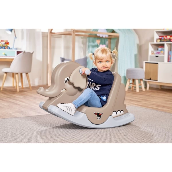 Mit dem freundlichen BIG-Rocking-Elephant macht Schaukeln großen Spaß, denn die Ohren des lustigen Elefanten machen jede Schaukelbewegung mit. Der Sitz ist anatomisch geformt und durch die hohe Rückenlehne und breite Beinauflagen sitzen die Kinder bequem und sicher. Zudem verhindert der tiefliegende Schwerpunkt des Schaukeltieres ein Umkippen. Zusätzlichen Halt geben die zwei seitlichen Griffe mit Handschutz. Die Kombination aus Grau und hübschem, frischen Hellblau wirkt in jedem Kinder- oder Wohnzimmer dekorativ. Durch das hochwertige und UV-stabile Kunststoffmaterial ist der BIG-Rocking-Elephant perfekt für innen und außen geeignet. Der wetterfeste Kunststoff lässt sich leicht und hygienisch reinigen.