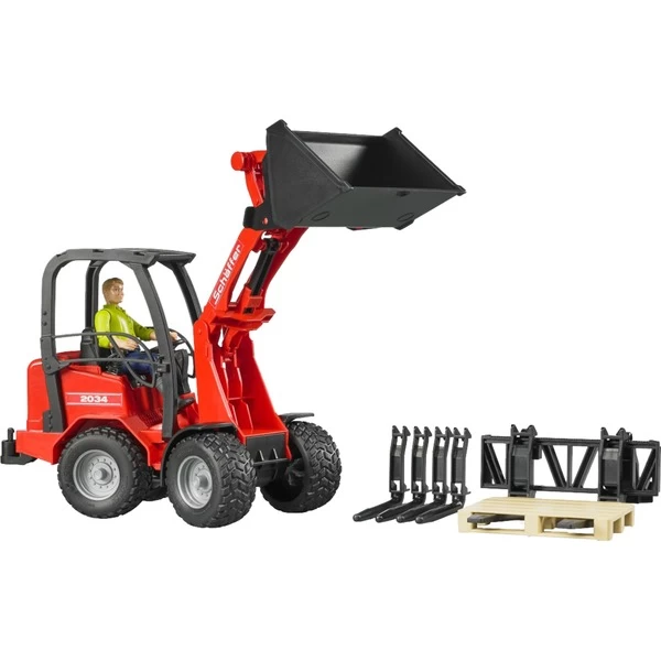 | Inhalt/Ausstattung | Fahrerhaus: Überrollbügel; Fahrzeugaufbau: abnehmbare Heckkupplung, Ladearm durch Zubehör aufrüstbar, kipp- und abnehmbare Frontschaufel; Fahrwerk: Knicklenkung; Bewegung/Funktion: voll funktionsfähiger Ladearm | ||