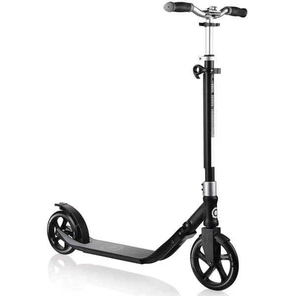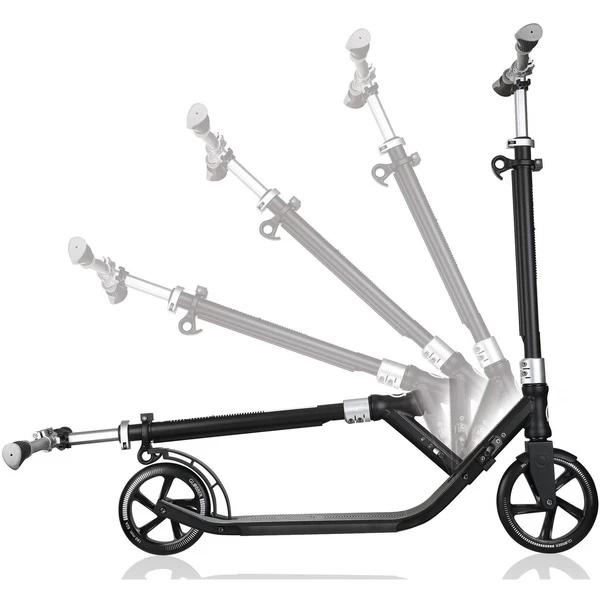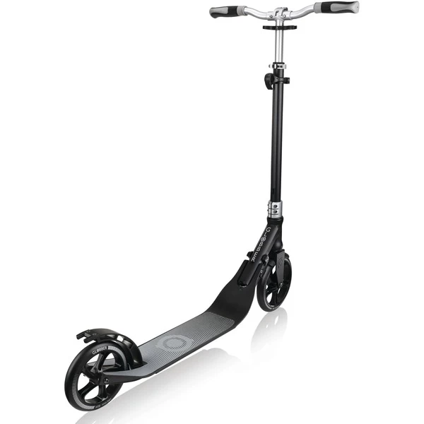 Der One NL 205/180 von Globber überzeugt mit seinem neuen Faltsystem. Über eine Klammer an der Lenkstange wird der Faltmechanismus entriegelt, sodass der Scooter sich in einer Sekunde falten lässt. Die Großen Räder (205 mm vorne, 180 mm hinten) sorgen dank 82 A Härtegrad und ABEC 7 Kugellagern für ein sportliches und dynamisches Fahrgefühl. Für Langlebigkeit sorgt das Deck aus Aluminium mit einer Anti-Rutschfläche. Der höhenverstellbare Lenker im BMX Style sorgt zusammen mit der Hinterradbremse aus extrudiertem Aluminium für Sicherheit und Kontrolle. Die Kombination aus Fahreigenschaften und einfacher Transportierbarkeit machen den One NL 205/180 zu einem praktischen Alltagsbegleiter.Art.-Nr.: 1620380