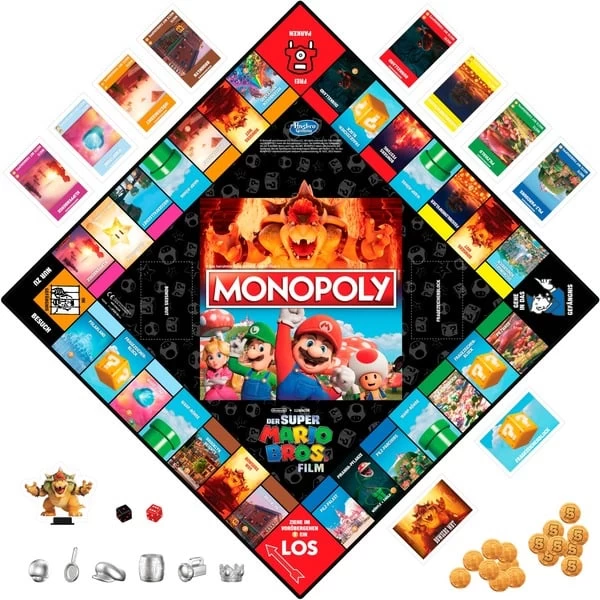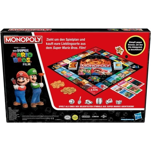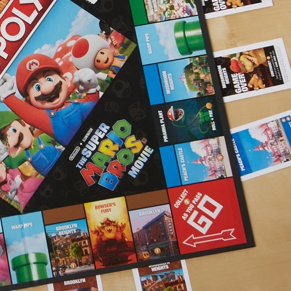Diese actionreiche Monopoly-Version zum Super Mario-Film entführt Fans von Monopoly in das Pilz-Königreich. Kultiges Mario-Design des Spielbretts und Spielfiguren, die Charaktere aus dem Film darstellen, sind aber nicht alles. Warp-Röhrenfelder beschleunigen das Spiel und zusätzlich gibt es Fragezeichenblöcke und Piranha-Pflanzen zu entdecken, bei denen Münzen verloren oder gewonnen werden können. Die Spieler müssen sich außerdem vor Bowser in Acht nehmen, der Grundstücke austauschen, Münzen stehlen und Spieler ins Gefängnis schicken kann.