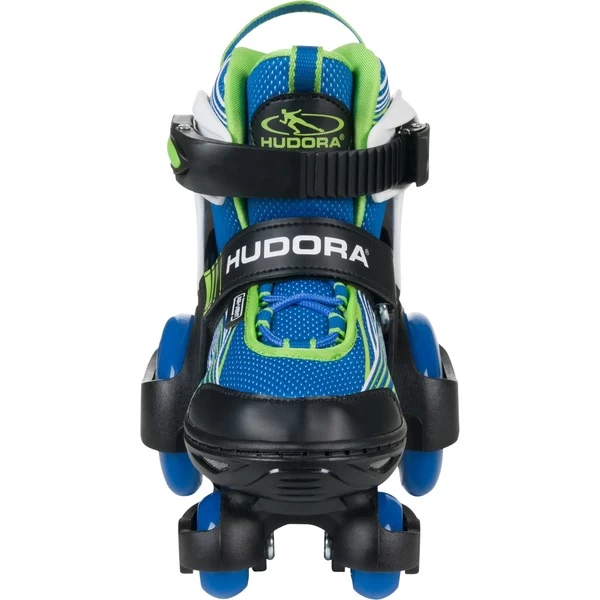 Die verstellbaren Kinderrollschuhe My First Quad machen erstes Rollschuhlaufen einfach und verhelfen schon den kleinsten Skatern zu schnellen Erfolgserlebnissen. Auf je vier leisen PU-Rollen und mit einem robusten PP-Chassis bietet der Rollschuh besonders viel Sicherheit und Stabilität beim Fahren. Die auf geschlossenen Kugellagern gleitenden High Rebound-Rollen sind mit einer Härte von 82A ideal für das Fahren auf dem Bürgersteig. Die Lenkung des My First Quad ist so eingestellt, dass die Spur ohne Probleme gehalten werden kann. Ein Gelenkschutz an Ferse und Knöchel gibt Halt, der integrierte Stopper an jedem Schuh macht Bremsen zum Kinderspiel. Die Stopper befinden sich am hinteren Ende des Schuhs, auch jüngere Einsteiger lernen hier also essentielle Bewegungsabläufe, die später beim Inlineskating wichtig werden. Mit zwei Push-Lock-Schnallen mit Ratschenband sind die Kinderrollschuhe schnell angezogen und optimal an den Fuß angepasst – das geht so einfach, dass Kinder die My First Quad einfach allein an- und ausziehen können. Luftlöcher in der Hülle und Aussparungen im Überschuh sorgen auch bei höchster Aktivität für eine optimale Belüftung. Der Innenschuh ist herausnehm- und abwaschbar. Das ungewöhnliche Design des My First Quad ist den besonderen Anforderungen von Fahranfängern angepasst. Die extra-großen Hinterrollen von 80 mal 20 Millimetern Durchmesser sorgen gemeinsam mit den kleineren Frontrollen (40 x 18 mm) für festen Stand – sind aber ebenso auffällig und fröhlich poppig gestaltet, wie das bunte Rollschuhdesign, das Kindern viel Freude bereitet. Lust auf Bewegung an der freien Luft ist vorprogrammiert. Der Kinderrollschuh My First Quad ist über einen Pull-and-Turn-Mechanismus sicher und stufenlos über einen Schlitten in acht Stufen größenverstellbar – dabei wächst er dank Kombigrößen (30-33) mit.Art.-Nr.: 1234863