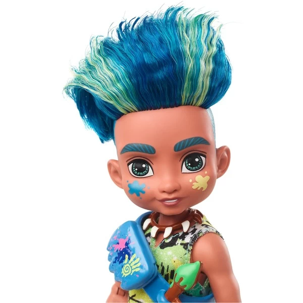 Willkommen beim Cave Club – einer mutigen Gruppe von Urzeit-Kids, die ihrer Zeit eindeutig voraus sind! Die Cave Club Puppen mit ihren ungebändigten Frisuren, ihren leuchtend neonfarbenen Styles und den niedlichen, aber mutigen Dinosaurier Haustieren regen zu unglaublichen Geschichten und Abenteuern an. Slate ist cool, kreativ und absolut begeistert von Graffiti-Kunst. Die Cave Club Slate Puppe trägt als Outfit eine neonfarbene Tunika mit einem Farbspritzer-Muster und bunte gestreifte Shorts. Er ist immer mit seinem prähistorischen Haustier und Freund Taggy unterwegs, und auch ein Steinzeitkamm und Malerwerkzeug dürfen nicht fehlen – mit der Palette, die an seinem Handgelenk befestigt werden kann, kann er überall seine Tags hinterlassen! Dank flexibler Ellbogen, Handgelenke und Knie können Kinder ihm dabei helfen, einem T-Rex auszuweichen, sich unter einer Lavafontäne wegzuducken oder die erste Höhlenmalerei aller Zeiten zu gestalten. Mit den Puppen und dem Spielzeug von Cave Club reist die Phantasie zum Anbeginn der Zeit, wo aufregende, neue Geschichten entstehen! Kinder ab 4 Jahren können mit ihrem Lieblings-Höhlenkind Abenteuer erleben oder auch alle Puppen sammeln, um mit der ganzen Truppe die Geschichte neu zu erfinden. Alle Artikel separat erhältlich. Abweichungen in Farbe und Gestaltung vorbehalten.Art.-Nr.: 1658149