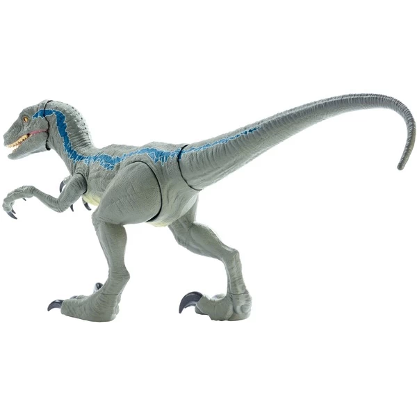 Das Abenteuer von Jurassic World ruft – mit dem ultimativen Dinosaurier für spannende Battle-Action! Dieser Velociraptor Blue Riesendino ist ca. 45 cm hoch und über 106 cm lang. Die Figur basiert auf dem beliebten Dinosaurier aus Jurassic World und beeindruckt mit der realistischen Hautstruktur und Farbe, unter anderem dem charakteristischen blauen Streifen. Der Velociraptor Blue ist mit seinen beweglichen Armen und Beinen für jeden Kampf bereit und hat einen Kiefer, der sich extra weit öffnen lässt – dadurch kann er bis zu 20 Mini-Dinosaurier-Actionfiguren komplett verschlingen. Achtung! Die Mini-Dinosaurier können durch die Klappe am Bauch befreit werden. Ab 4 Jahren.Art.-Nr.: 1609368