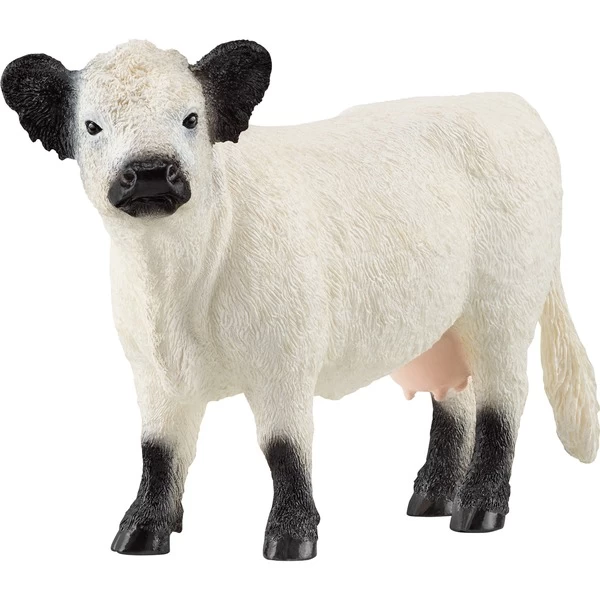 Die weiße Galloway Kuh mit ihren schwarzen Ohren und Hufen und der kecken Schnauze sieht zu niedlich aus! Ihr dichtes Fell hält sie warm, deshalb kann sie auch in eisigsten Wintern draußen bleiben. Ein warmes Plätzchen im Kinderzimmer würden sie aber bestimmt nicht verachten. Galloways sind eine Hausrindrasse, welche ursprünglich aus Schottland stammt. Am besten sind sie für die ganzjährige Freilandhaltung geeignet und nicht für eine Haltung in geschlossenen Ställen.