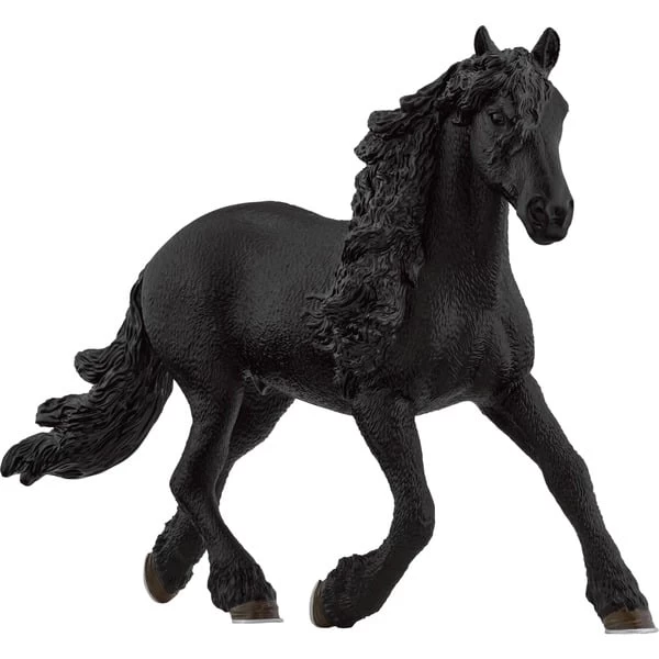 Durch seinen schwungvollen Gang wallt das lange Haar der Mähne üppig über seinen Rücken. Der stolze Friese Hengst ist schwarz wie die Nacht und mit seiner stattlichen Größe einfach ein toller Anblick. Dieses große, kräftige Pferd ist die Sanftmut in Person und sehr zuverlässig. Am liebsten arbeitet der Friese Hengst eng mit seinen Freunden zusammen. Er ist auch als Dressurpferd sehr beliebt.Art.-Nr.: 100016819