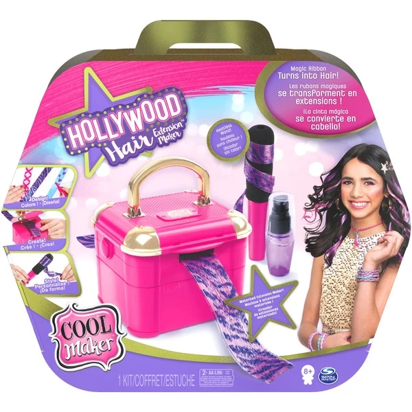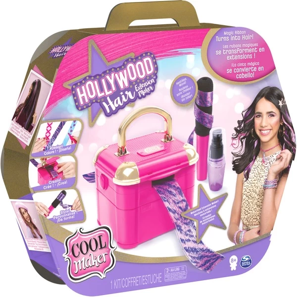 Mit Cool Maker lassen sich Do It Yourself und Beauty Trends ganz einfach umsetzen. Mit dem Hollywood Haarstudio wird die Frisur zum Fashion-Statement. Aus textilen Bändern werden coole, selbstgestaltete Strähnchen, die sich einfach ins Haar klippen lassen. Ob Lust auf einfarbig, bunt, glatt oder gelockt, alles ist möglich und ganz einfach selbst zu gestalten. Schleifenband auswählen, gestalten, durch das Studio laufen lassen und dann mit dem enthaltenen Lockenstab und Wasser stylen. Nach dem Trocknen im Haar anbringen, fertig ist der coole Look, der echten Hollywood Glamour ausstrahlt.Art.-Nr.: 1651699