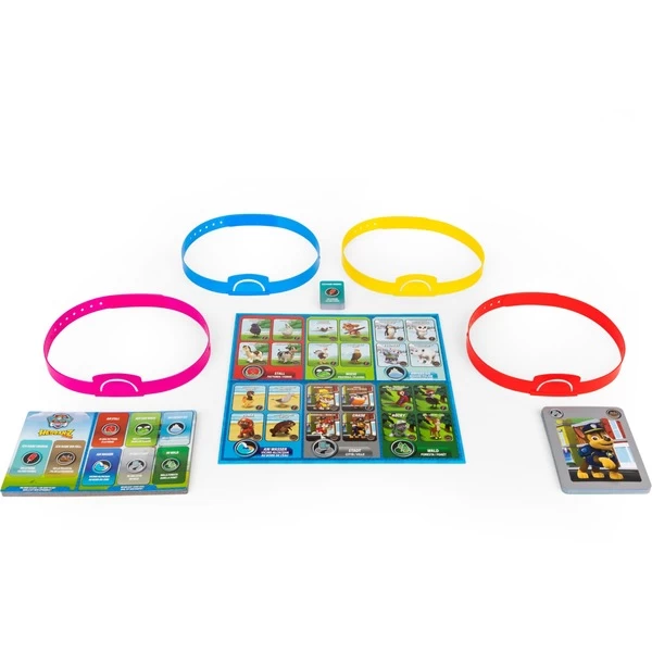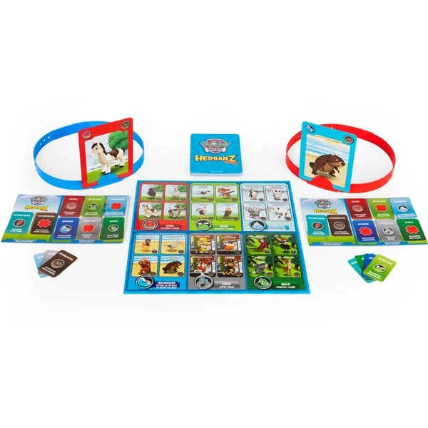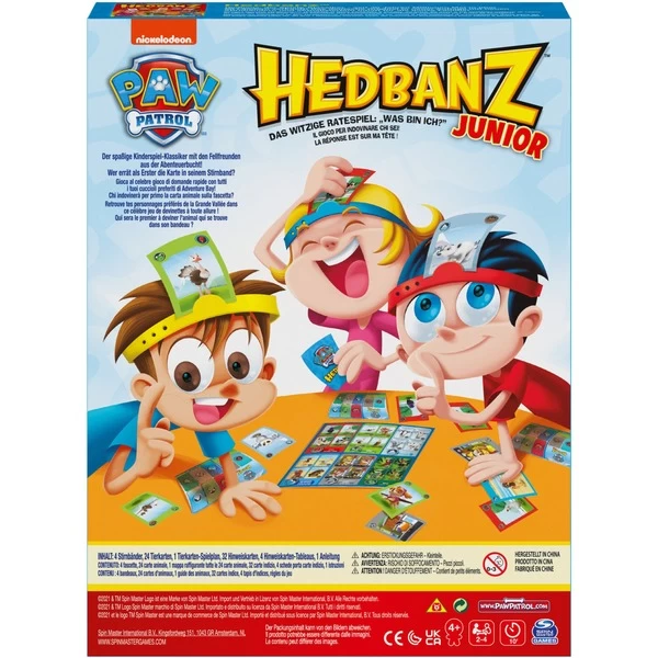 Hedbanz Junior – Paw Patrol: das lustige Rate- und Kommunikationsspiel – mit den Hunden der Paw Patrol. Jeder Spieler trägt ein Stirnband, an dem eine Karte befestigt ist, die er selbst nicht sehen kann, sondern erraten muss. Eine zentrale Motivübersicht zeigt die möglichen Bilder, das sind die Hunde der Paw Patrol und Tiere aus der Umgebung der Abenteuerbucht. Wer an der Reihe ist, darf eine Frage stellen, z.B.: Habe ich Fell? Die Mitspieler anworten mit Ja oder Nein. Jede Antwort kann auf einem einfachen Tableau nachgehalten werden, so engen sich Frage für Frage die Möglichkeiten ein, und irgendwann wird jeder versuchen zu lösen: Bin ich Chase? Es gewinnt, wer zuerst die Karte in seinem Stirnband errät. Hedbanz Junior – Paw Patrol, für 2-4 Spieler ab 4 Jahren.Art.-Nr.: 1761437