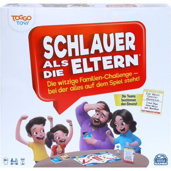 Schlauer als die Eltern ist ein witziges Familienspiel – bei der alles auf dem Spiel steht. Kinder und Eltern – zeigt, was ihr drauf habt. Altersgerechte Quizfragen und spaßige Minispiele fordern Klein und Groß gleichermaßen heraus und sorgen für faire Chancen. Der Spieleinsatz kann frei festgelegt werden: Pizza für alle oder Kinderzimmer aufräumen? Wer hat am Ende die Nase vorn bei diesem packenden Quiz- und Action-Spaß für die ganze Familie?Art.-Nr.: 1850245