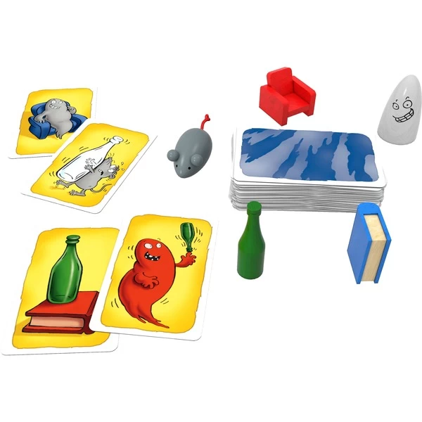 | Inhalt/Ausstattung | 5 Figuren (Geist, Sessel, Flasche, Buch, Maus), 60 Karten, 1 Spielanleitung | ||