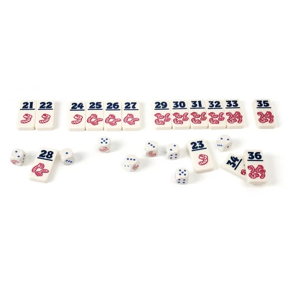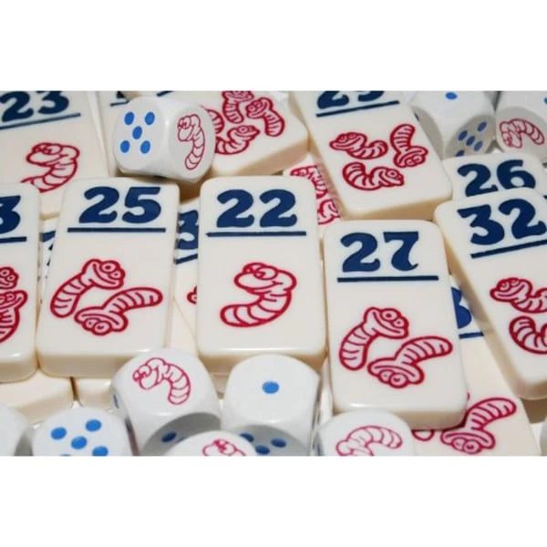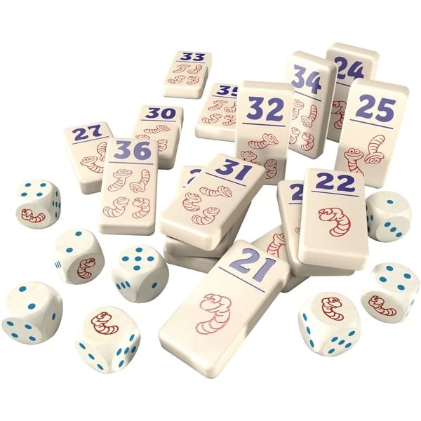| Inhalt/Ausstattung | 16 Bratwurmportionen mit den Werten 21-36, 8 Würfel mit je 6 Symbolen (einem Wurm und den Zahlen 1-5), 1 Spielanleitung | ||